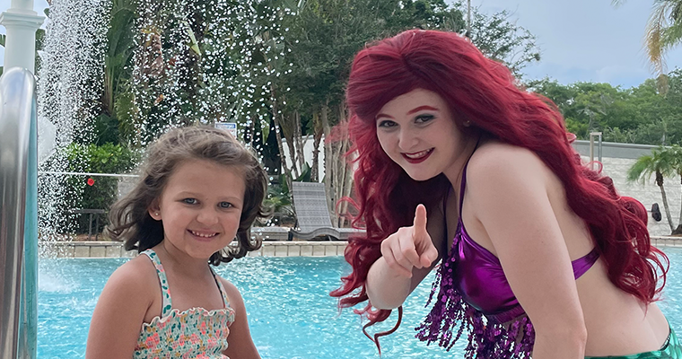When she finished her chemotherapy treatments, Harper’s family decided to plan a trip to Disney World which happened to coincide with Banks’ trip to Orlando. Banks coordinated the opportunity for Harper to “swim with Ariel.”
